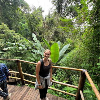 Our second activity was the highlight and main point of the day. We did a jungle trek. It said hike in the description but when I imagine a hike I picture myself scaling up a mountain, step after step, and a stretch of a steep incline... and this wasn’t that. We ended up starting at the top of the hill and walking down it. As we walked our tour guide would stop to explain some of the plants and animals we came across. We saw banana trees, coffee trees, pineapple trees, and avocado trees. There was a snake camoflauged in the green, but I didn't put to much effort to seek it out when I couldn't find it after a few moments and instead sought to retreat to safety. It was so cool to see how the food is grown in this small village. We saw more waterfalls on this walk, crossed bamboo bridges, and passed expansive rice paddies. Seeing the rice paddies was my favorite thing we came across, them being worked on and maintained while we simply strolled through the land.
