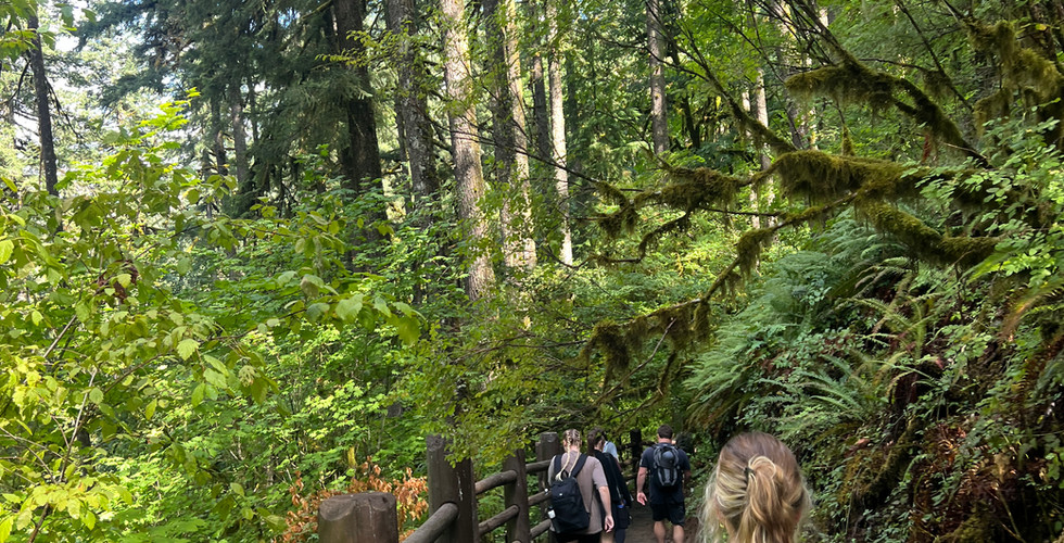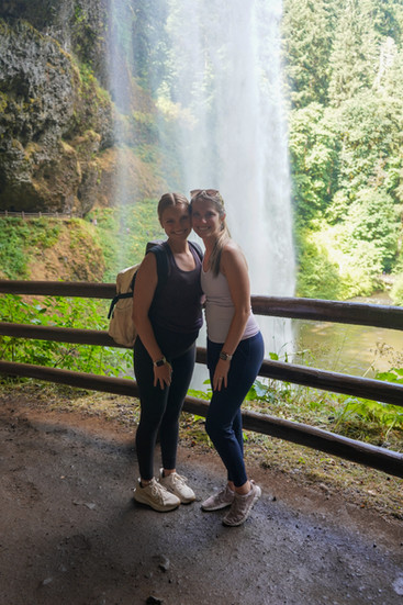We were hiking the trail of 10 falls. It is about a 3-5 mile loop, depending on which trail you take. You hike past several beautiful waterfalls in a row, 10 to be exact. I really liked the first few waterfalls we saw because you got to walk behind the water and feel the mist cool your skin. The 10 waterfalls were in every possible shape and size. Some short and wide, others long and narrow. Also along the trail were many smaller streams and creeks with beautiful trees and scenery all around. It was all very lush and green and almost jungly. This is exactly what I pictured a day in Oregon to be and I was loving that feeling.