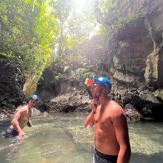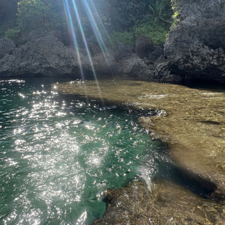 After 10 minutes waiting for Edu, having time to try jackfruit from the locals, he texted back saying he was already inside, he snuck through the entrance, which I see how he was able to do that as there was a large bus entering at the same time he did, hiding his bike and getting home free. Sneaky Spanish man. We met Edu in the water, there were a lot of other tourists there, but when we walked away from the main area, it was a lot less crowded. The tide was still pretty high when we went, so it didn’t have the same effect as how we should have properly seen it in low tide, but it was still cool jumping in and out of the different tide pools. I really enjoyed this stop, it was gorgeous and something I hadn’t done before. We practiced our dives, having to teach Zane. We also swam a ton and we met up with Khay because she was doing her own tour of the island and stopped here to join us for a moment. But, she was headed back to General Luna that night and I was tempted to ask if I could join her for the ride back, but we hadn’t even gotten to our final destination and I did really want to surf in the north, so I thought I’d stay put with the current plan.