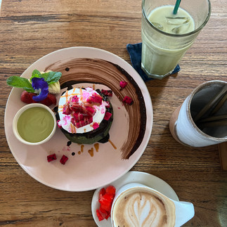 It’s impossible for me to decide between sweet and savory when I am these vegan places, and Charlotte graciously agreed to split a meal with me so we could try move and have that mix of both. Her choice for the sweet was matcha chocolate pancakes (they were so good and the matcha was really light so it didn't take away from the flavor) and I picked the avocado toast for our savory dish. A second breakfast essentially but I loved it. This cafe was so vibes, a whole wall of it exposed to the open air, pouring in sunshine for all of us to enjoy.